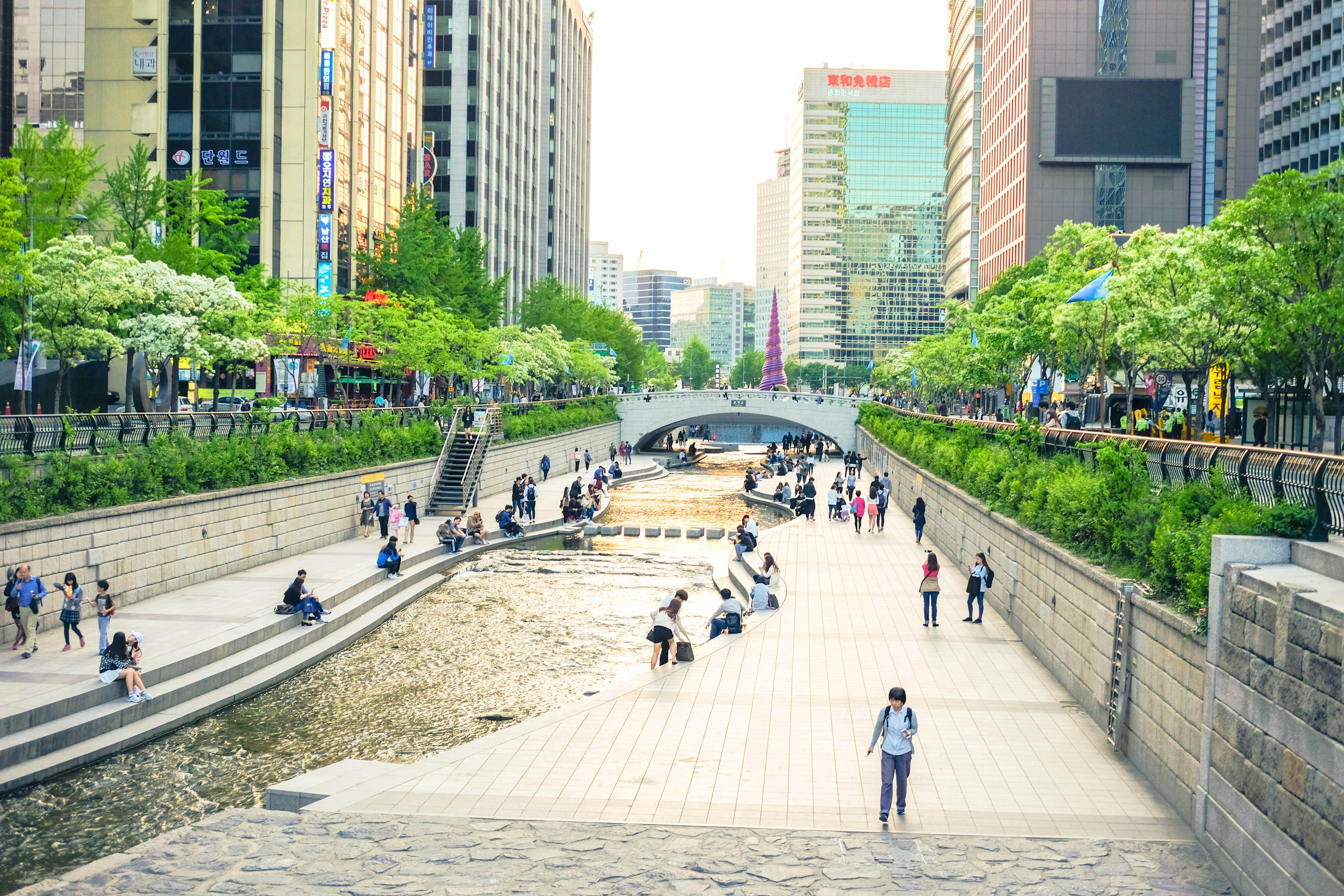 서울 한복판을 흐르는 도심 속 하천입니다. 야경이 아름답고, 주변 상점과 어우러져 데이트 코스로도 적합합니다.
